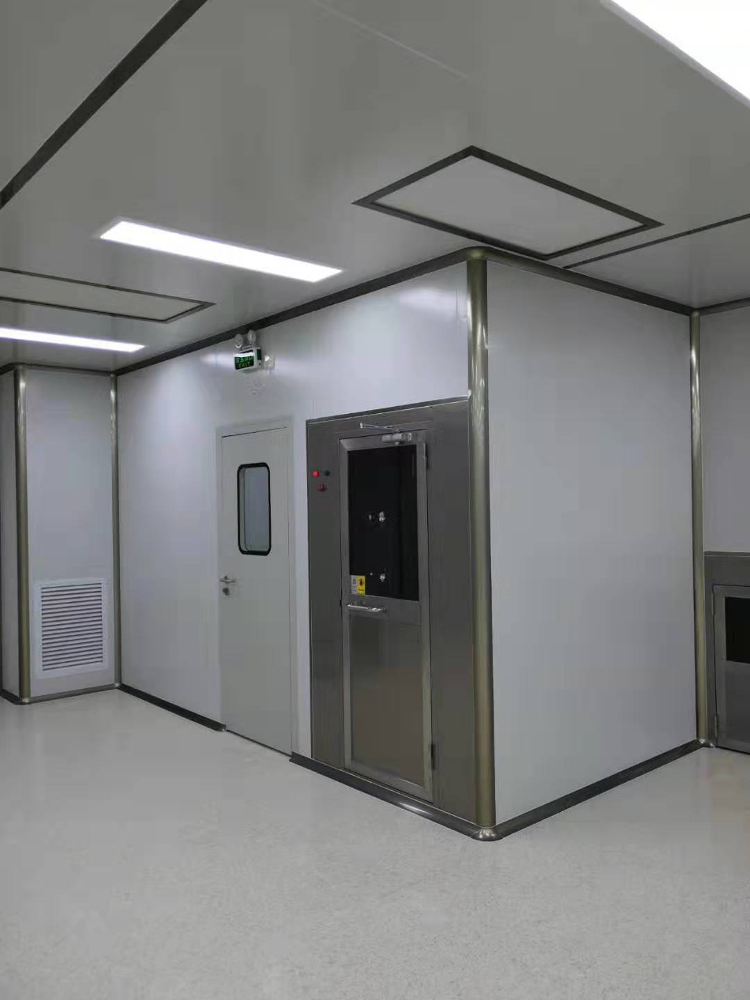 洁净车间的空气循环是通过设置在吊顶内的空调机+末端FFU高效送风单元完成的。其气流组织采用上送下侧回。风系统只设回风管,回风管通过室内回风竖井将室内空气输送至FFU回风口来实现回风。